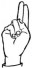 На ћирилици написано ЕВГЕНИЈЕ ЛЕВИЋ састоји се из 13 слова [?]. Исписано ћириличном једноручном азбуком за глувонеме: